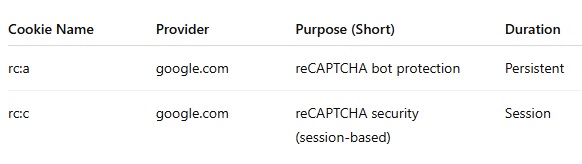 Some cookies are set by third-party services (such as Google reCAPTCHA) to provide security and protection against spam. These may involve international data transfers to the USA under Standard Contractual Clauses.